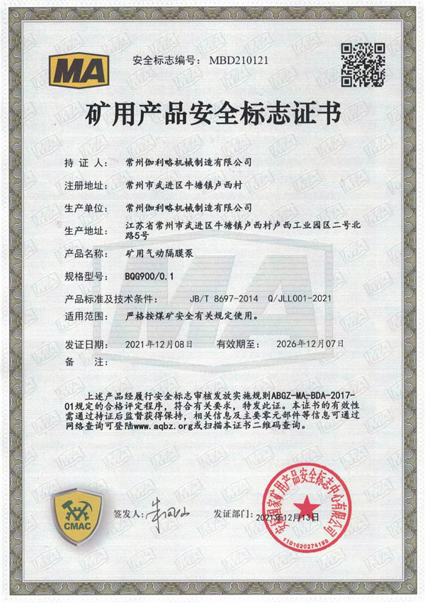 • 礦用安全標(biāo)志證書-BQG900/0.1